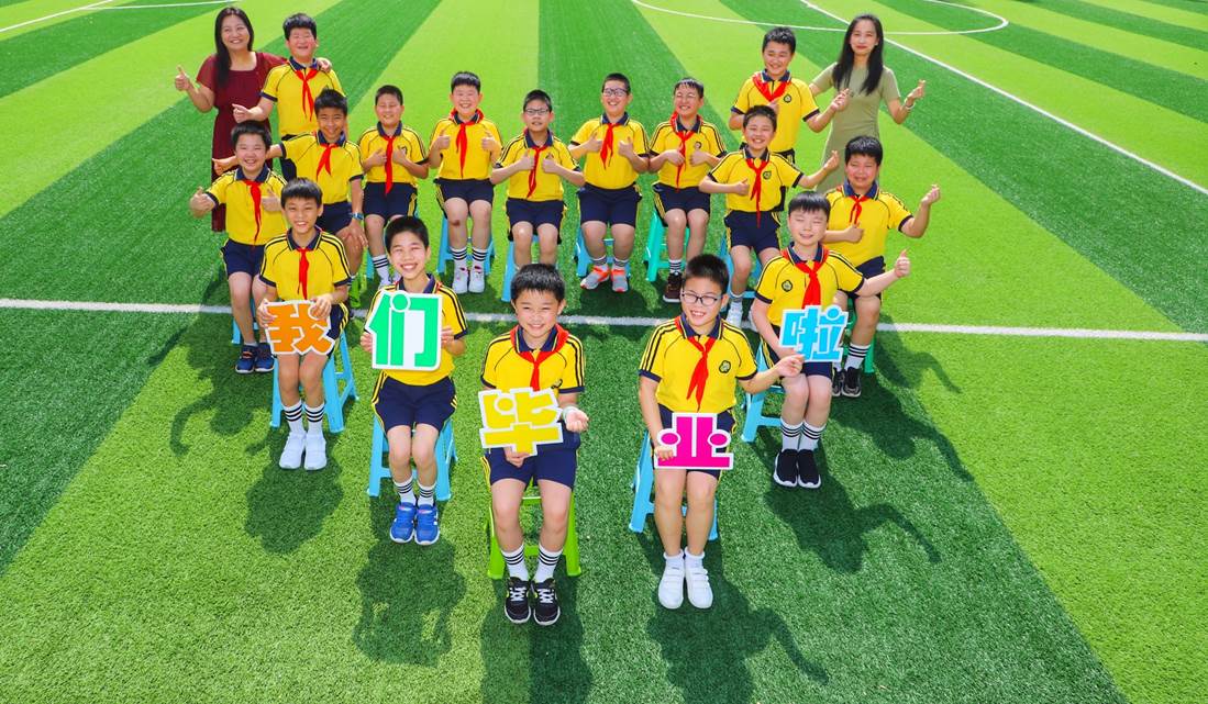 2020年的612日上午,和着朝阳,五年级各班的少年们和最亲爱的老师们在学校绿茵场上定格了下了一张张的笑脸。