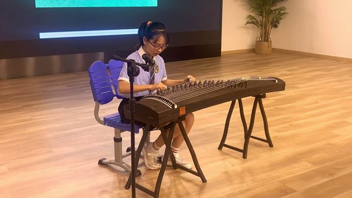 严肃的教学楼、美丽的小花坛、绿茵茵的足球场,无不留下同学们的足迹。琅琅的读书声、快乐的歌唱声,不时地回荡在校园的上空。与同学们携手走过5个春秋,友谊也经过了无数的磨练,虽然我们即将分离但是同窗友谊永远存在。古筝表演道不尽对同窗之情的不舍,曲终人不散。