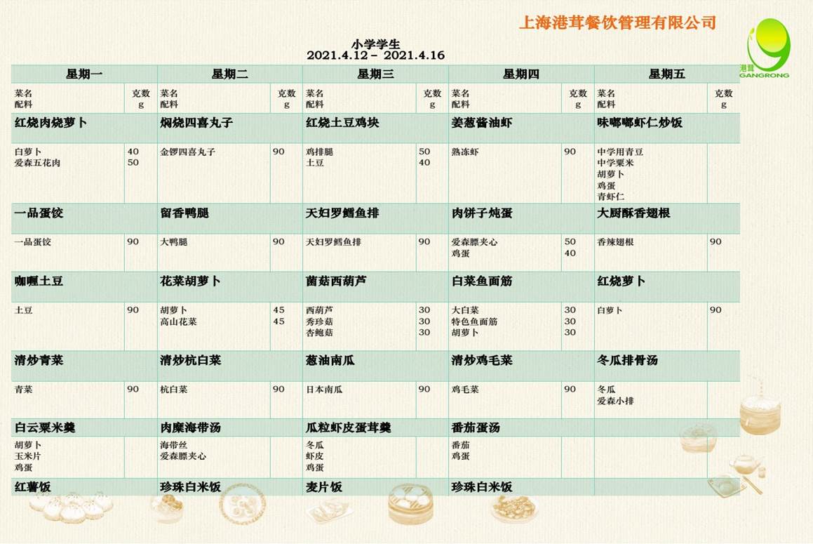 2021.4.12-2021.4.16菜谱