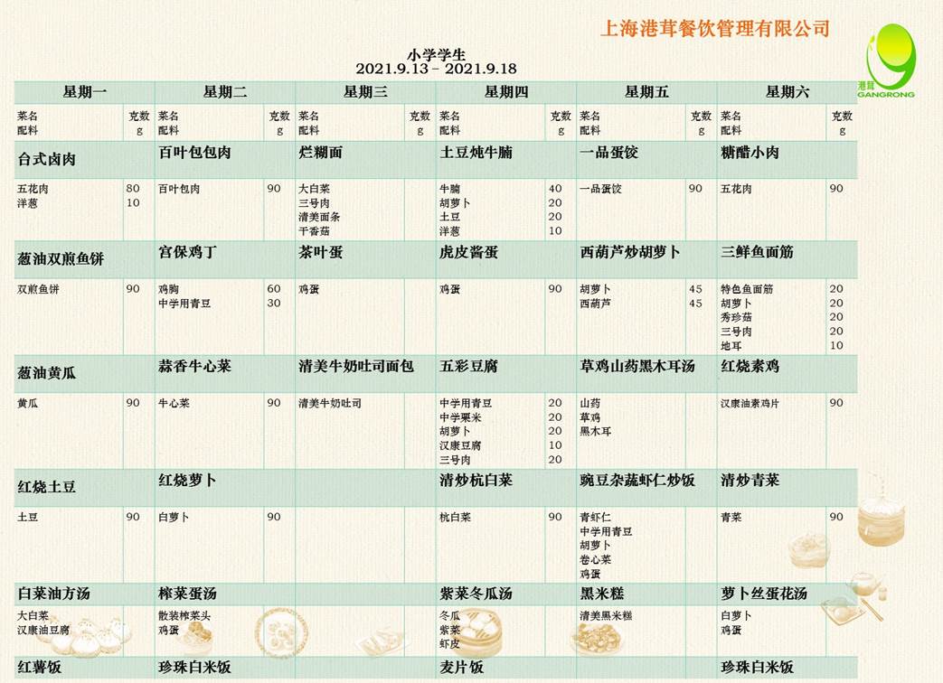 学生菜谱 9.22-9.26