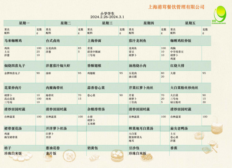 学生菜单2.26-3.1