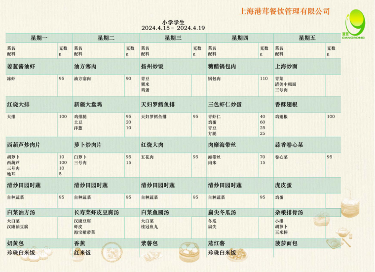 学生周菜单4.15-4.19
