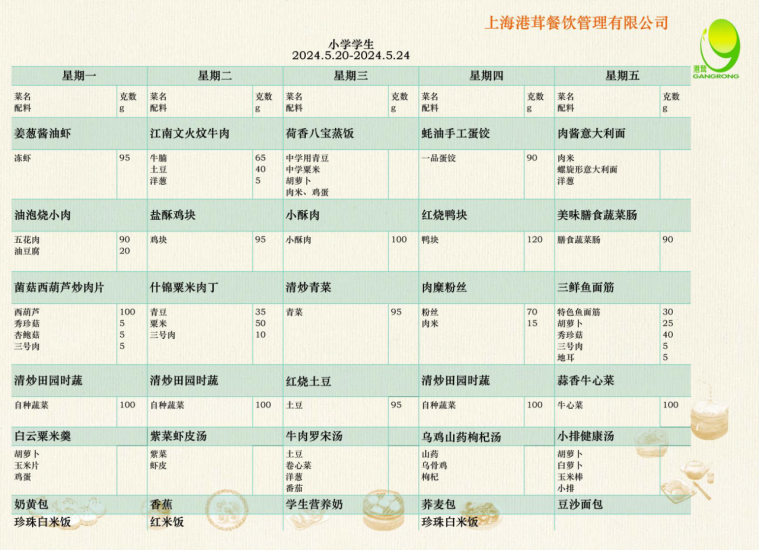 学生菜单5.20-5.24