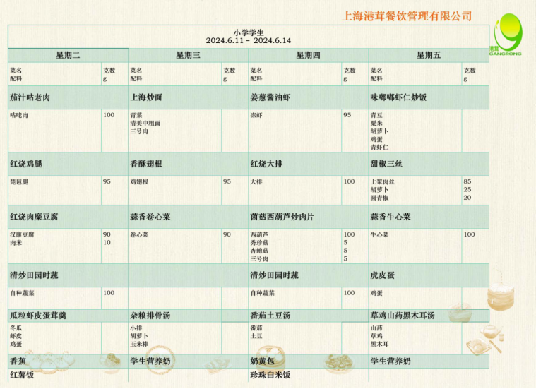 学生菜单6.11-6.14
