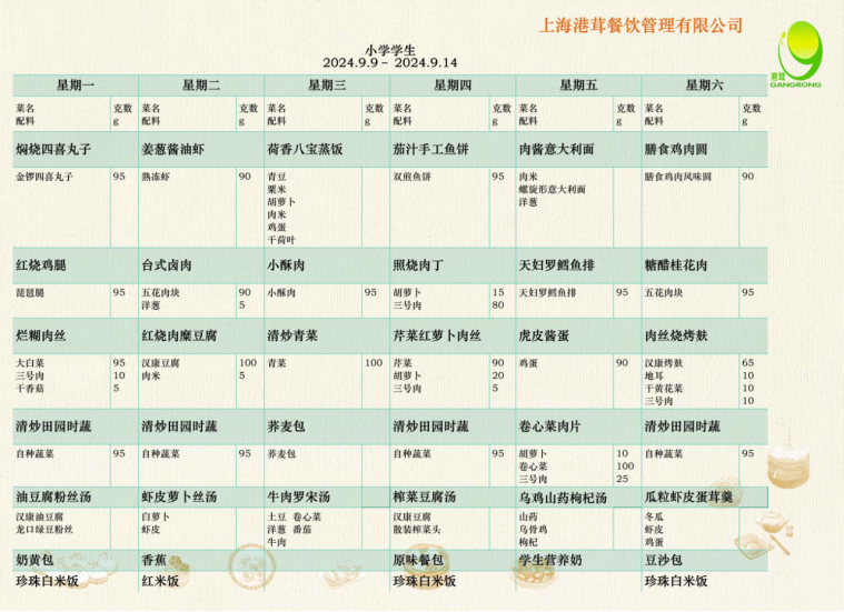 学生菜单9.18-9.20