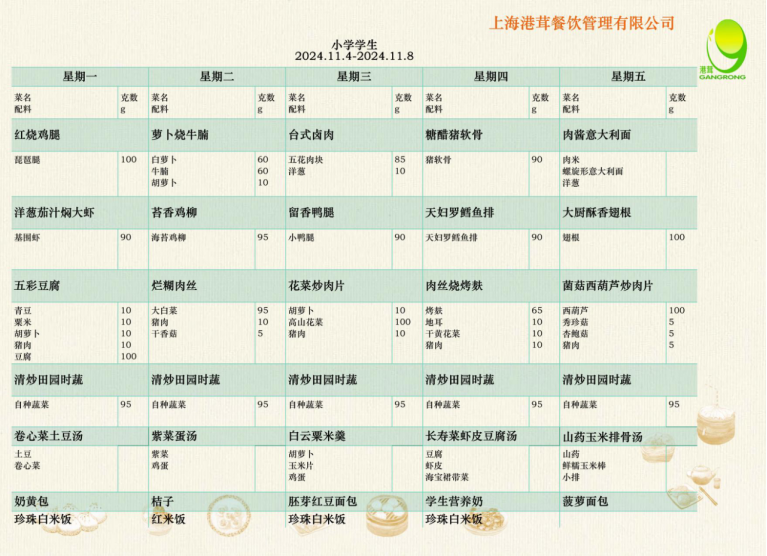 小学学生菜单11.4-11.8