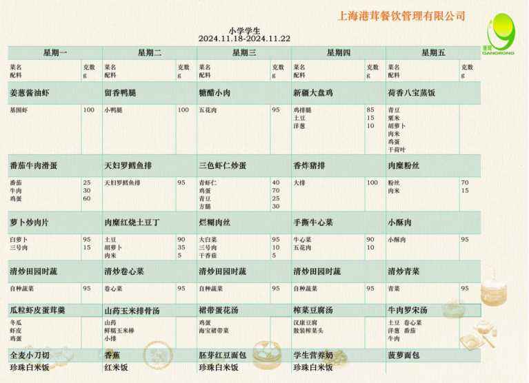小学学生菜单11.4-11.8