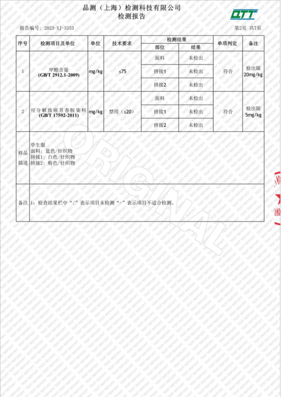 学生服检测报告2